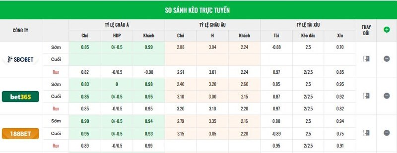 Điểm mạnh nhất khiến mình gắn bó lâu dài với Bongda info chính là khả năng cập nhật ty le keo cực nhanh. Mỗi khi các nhà cái lớn như SBOBET, BET365, 18BET, M88, CROWN, 188BET hay Eurobet đưa kèo ra, Bongda info ngay lập tức hiển thị đầy đủ.